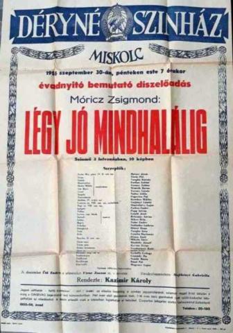 Plakát - Móricz Zsigmond: Légy jó mindhalálig. Társulat: Déryné Színház, Miskolc; rendező Kazimir Károly