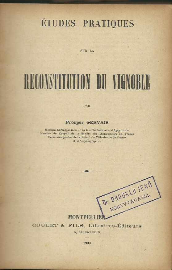 Korabeli, kissé kopottas félvászonkötésben. Dr. Drucher Jenő (1866 – 1926) szőlészeti és borászati szakember könyvtárából