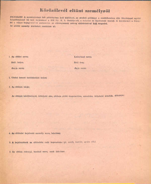 Szabadlábra helyezési rendelvény, kb. 140 kitöltetlen nyomtatvány az 1980-as évekből.