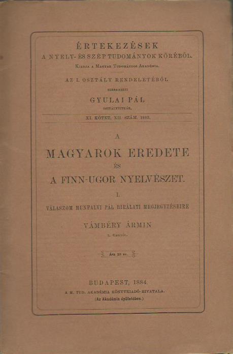 Vámbéry Ármin: A magyarok eredete és a finn-ugor nyelvészet. I. Válaszom Hunfalvi Pál bírálati megjegyzéseire