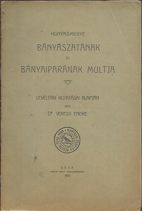 Veress Endre: Hunyad megye bányászatának és bányaiparának múltja levéltári kutatásai alapján