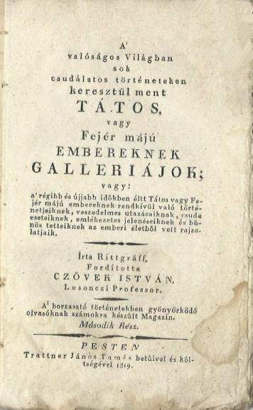 Czövek István (ford): A valóságos világban, sok történeteken keresztül ment Tátos, vagy fejér májú embereknek gallériájok. Rittgraff után németből. Második rész