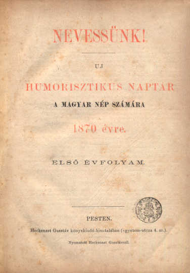 Nevessünk! Új humorisztikus naptár a magyar nép számára 1870 évre. Első évfolyam.