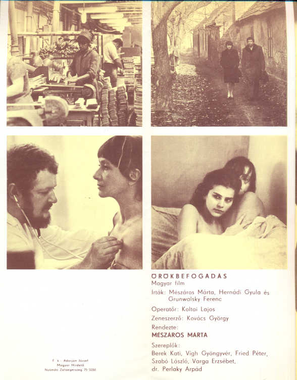 Mészáros Márta Örökbefogadás c. filmjének, ismertető, promóciós kiadványa