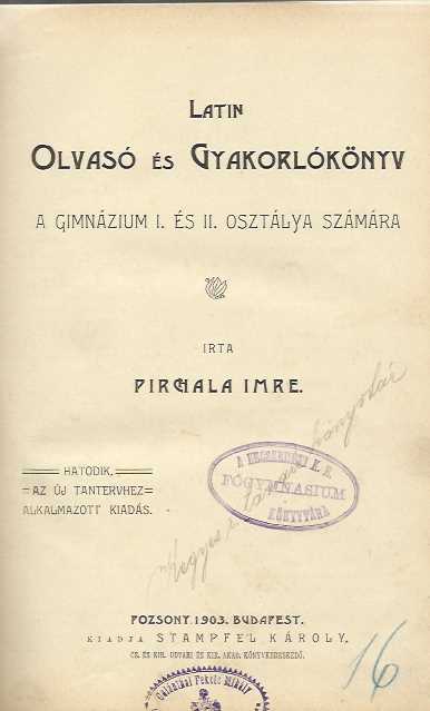 Latin olvasó és gyakorlókönyv a gimn. 1–2. oszt. számára