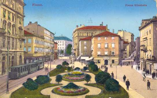 képeslap 1914-ből - Fiume. Piazza Elisabetta.